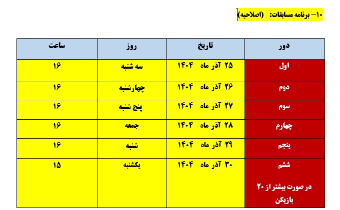 جدول اصلاحیه زمانبندی دور ها به شرح روبه رو اعلام میگردد.