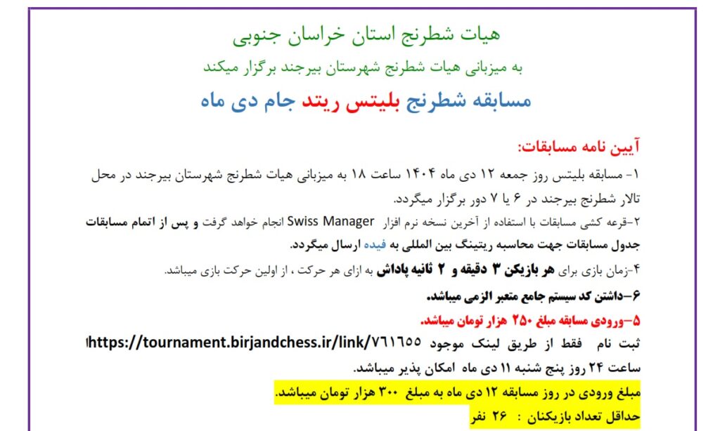 به سایت هیات شطرنج خراسان جنوبی و بیرجند خوش آمدید